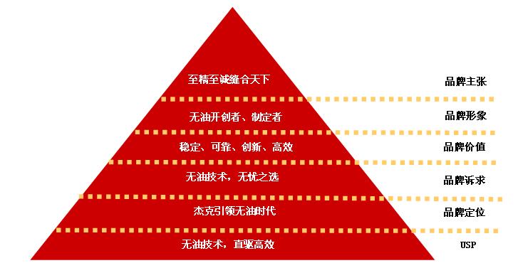 杰克目前还只是一个具有一定知名度的品牌,且主要服务于中低端市场,而且由于对品牌关注度低和品牌推广能力有限,品牌形象一般,但是杰克产品的性价比要高于竞争对手,且网络覆盖区域比较广。南方略项目组认为其近期目标应该从具有一定的知名度向全国性领导品牌迈进,其远期目标则是成为在全球具有一定竞争力的国际化品牌。