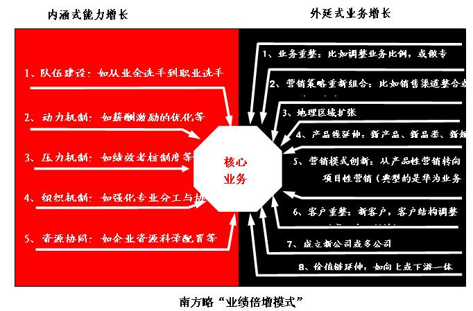 经过南方略多年咨询经历发现,相当一部分企业的成长与发展主要依靠两个拉力和一个推力,一个拉力是市场机会或行业机会拉动的增长,企业遇到发展的良好机遇,另一个拉力是借助企业惯性的增长,多年与用户的积累,形成了大的惯性;一个推力是依赖于某个好产品产生的产品力的推动,产品功能好,质量不错,深受市场欢迎。中国的缝制企业也是这样,过去的增长过多的依赖于国家经济增长和外向型的经济政策帮助,取得一定规模后,又保持了一段惯性增长。但是企业靠拉力或推力都不能实现持续的增长,市场趋于竞争激烈和环境多变,客户不断受到别人的诱惑,某个产品总要过时,换句话说靠拉力或推力的增长其实是一种粗放式经营行为,没有将企业的资源进行有效整合,将资源转变为可持续的整合资源的管理或营销力,也就是说从粗放式经营向精细化经营转变,深耕市场。可以看出这也是中国缝制企业成功转型的关键所在,为此南方略为杰克导入了业绩倍增模式。