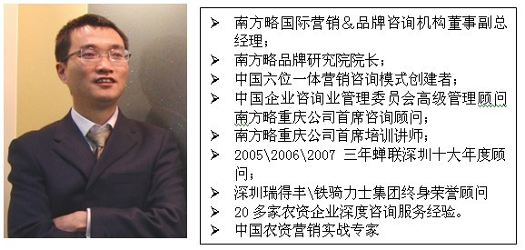 曾在农药复配制剂标杆企业——深圳诺普信企业担任过市场部长及营销副总,农资资深著名营销和品牌专家;现南方略总经理