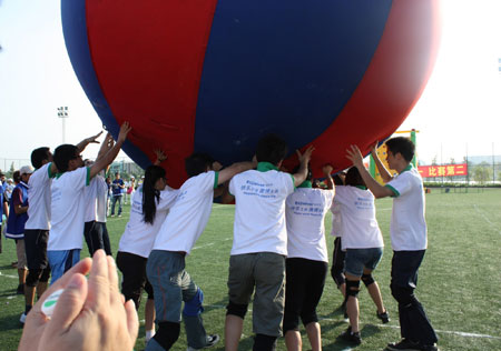 2009年9月4日,在南方略老师的带领下,以创意生活,激情无限为主题的松山湖第三届趣味运动会在美丽的松山湖体育公园拉开帷幕,来自松山湖的企业单位包括依时利在内的26支队伍参加了这次运动会。参赛人数达到了540人之多,比赛项目包括点球大战、雷霆战鼓以及八戒背妻等7个比赛项目。其中,鸿运彩球这个项目更多的是考验大家的默契和团队协作能力。虽然今天天气有些炎热,但大家的竞赛激情丝毫没有受到影响。