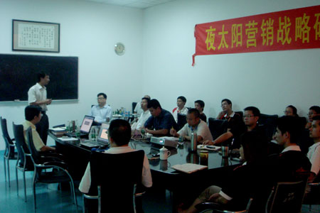 2009年8月16日,夜太阳营销战略研讨会正式召开。参加会议人员涵盖夜太阳公司高、中、基层,涉及营销、生产、管理、品质技术等众多部门。会议开始,南方略营销咨询机构副总经理、项目总监王昭伟老师就战略的本质和如何制定战略进行了现场的培训,让与会人员充分认识到战略的重要性和制定战略的方法,方便会议的进行。