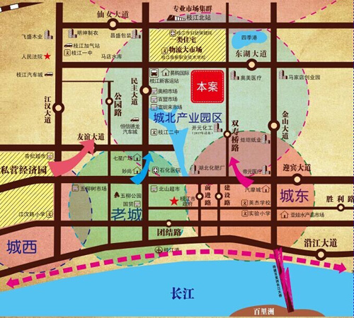 龙鑫广场项目是由湖北省供销社投资5亿元开发建设,位于枝江市城北新区,东临双寿桥路、北临东湖大道和长途汽车站,距枝江高铁站仅5分钟车程。项目总占地面积150亩,分二期建设,其中:一期占地面积100亩,为3层商业物业12栋、仓储以及基础配套设施多栋;二期占地面积50亩,为3层商业物业13栋、电子商务办公楼、商务酒店及其他配套设施。龙鑫广场将打造为集农产品区域分销、全球电商、仓储物流、综合配套等于一体的现代综合体,是全国领先的第四代市场业态,首创“电商引领、联动上下游产业”,以O2O模式打造鄂西最大、最全、最优的产业链生态圈。