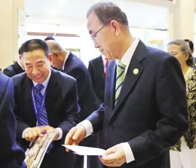 2014年7月,美国纽约,联合国经济与社会理事会、国际生态安全合作组织等国际机构主办的“可持续发展问题高级别政治论坛”举行。作为中国农业生物领域的代表,党永富应邀作专题发言,成为第一个走上联合国讲坛的中国农民。会上,党永富呼吁全世界开展肥料减量控制污染!拯救被化肥污染的耕地已刻不容缓!联合国经社理事会组织的高级别专家在会议期间,对党永富研发的肥料减量、除草剂副作用防控与土壤污染治理技术进行了鉴定推广,为他在土壤治理方面的成功实践激动不已。